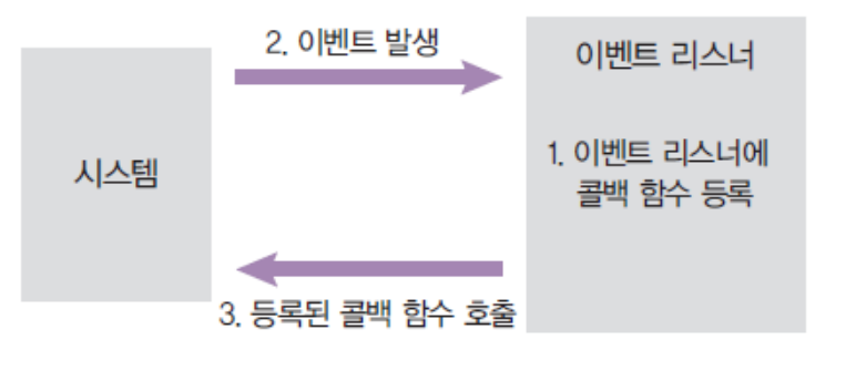 - 이벤트가 발생할 때 미리 지정해둔 작업을 수행하는 방식을 의미합니다.