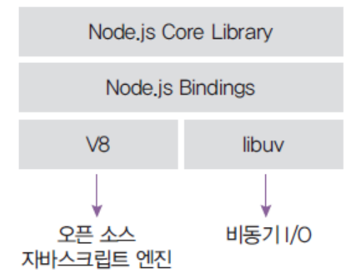 - libuv 라이브러리는 Node.js의 특성인 이벤트 기반(Event-driven), Non-blocking 모델을 구현하고 있습니다. 위와 같은 특성으로 가볍고 효율적인 성능을 낼 수 있게 되었습니다.