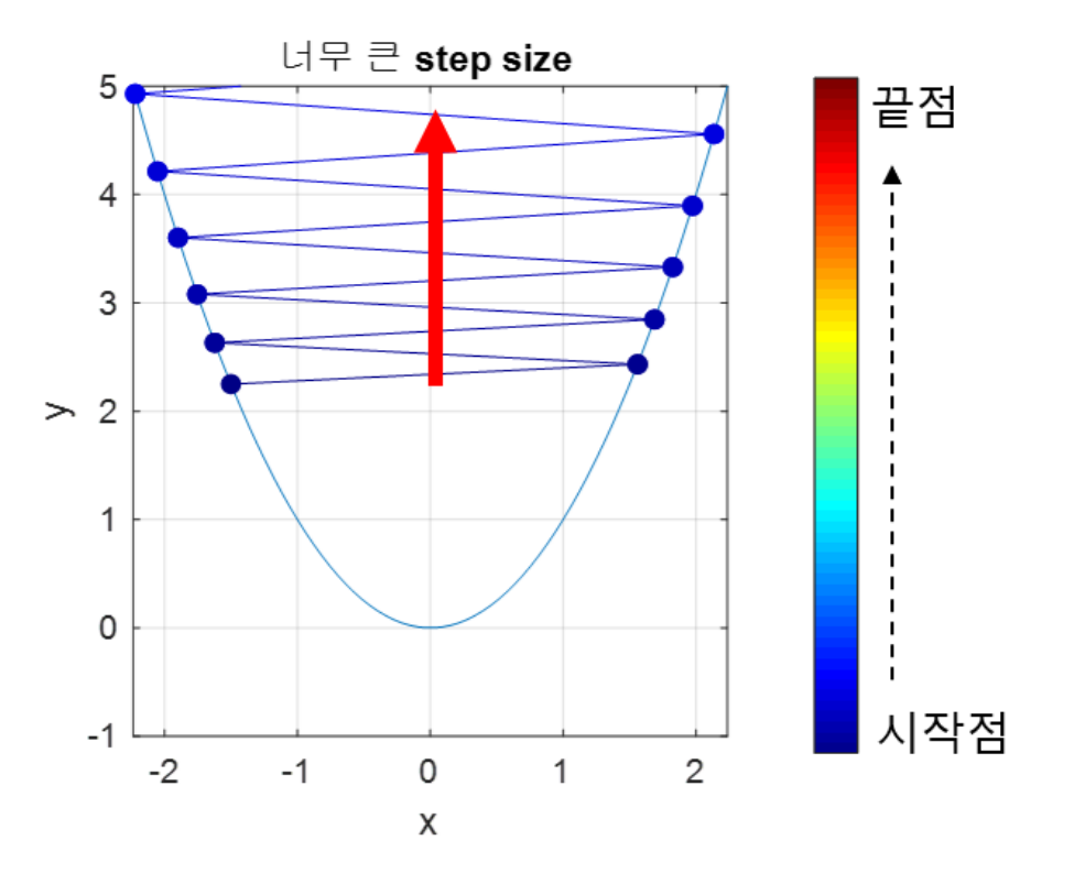 4-1. 첫 번째 대표적인 문제 - Step size 선정 : Step size를 과도하게 설정한 경우