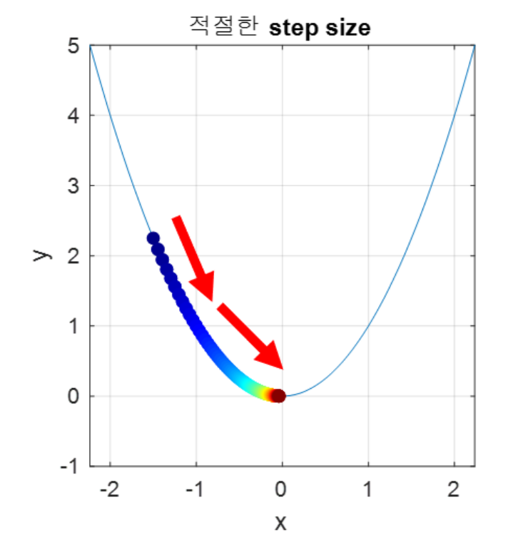 - 이를 통해 Step size의 크기를 적절히 조정하여 최적의 파라미터를 탐색하는 것이 중요한 요소가 됩니다.