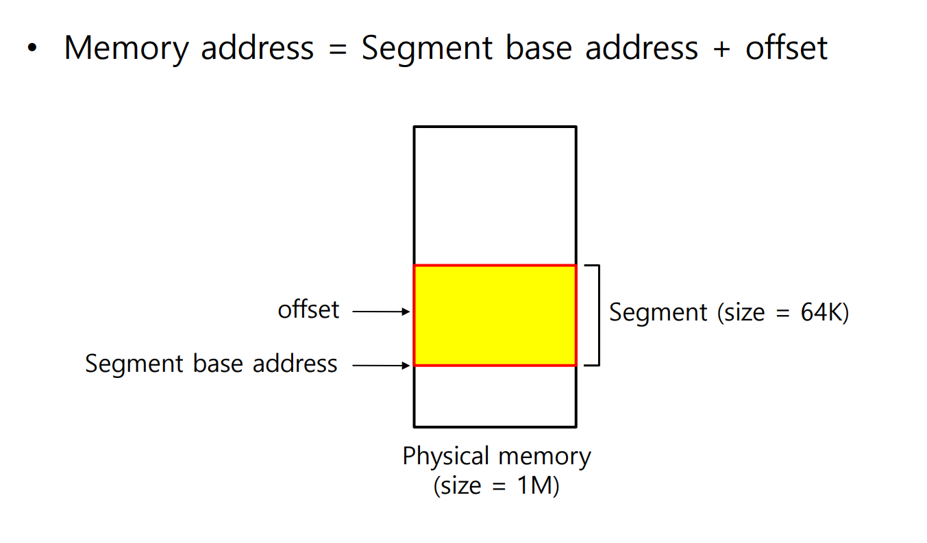 - 세그먼트(Segment)는 사전적인 의미로 "부분"이라는 뜻을 가지고 있습니다 컴퓨터 과학에서의 세그먼트는 메모리의 한 부분(최대 64 KB)을 의미하며 이에 따라 Offset은 해당 세그먼트의 상대적 주소를 의미합니다.