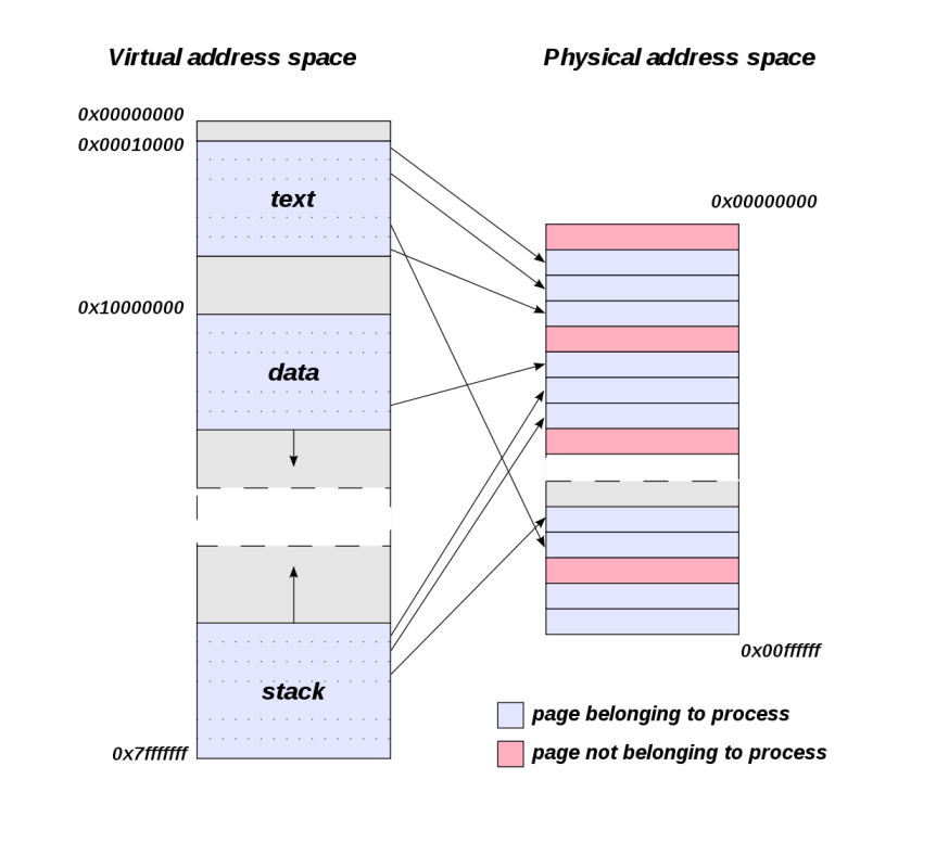 (2) 하지만 이 부분은 실제 메인 메모리와 연관이 있지 않으며 운영체제에 의해 만들어진 가상의 공간이기 때문에 실제 물리적 메모리 내부에 프로세스에 대한 실체가 존재합니다.