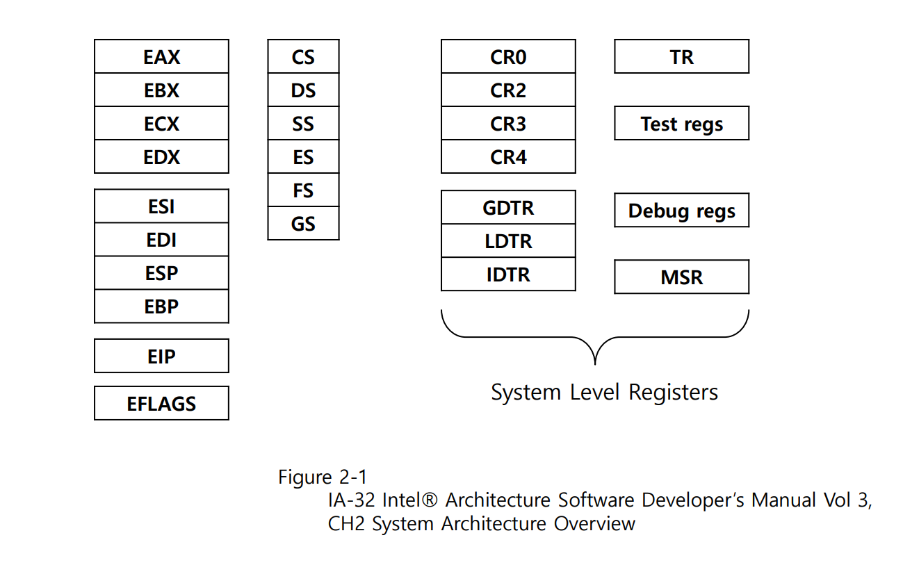 - Protected mode에서는 System level registers 영역도 사용이 가능합니다.