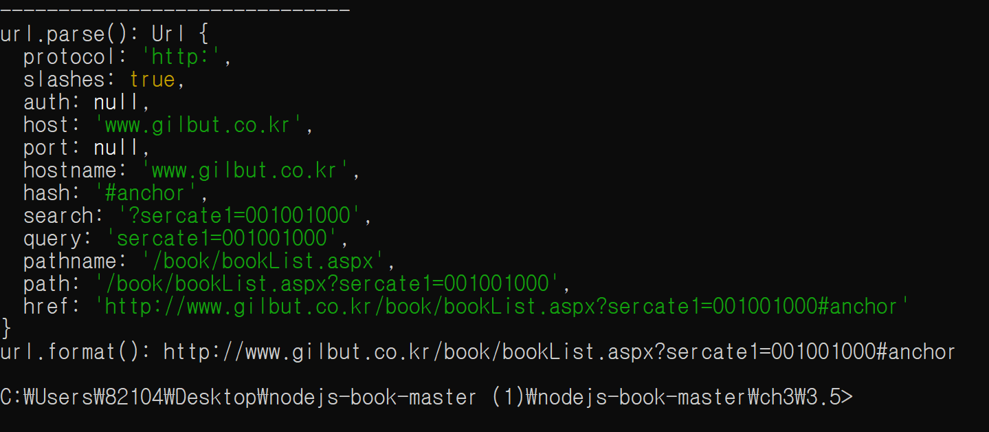 const parsedUrl = url.parse('http://www.gilbut.co.kr/book/bookList.aspx?sercate1=001001000#anchor');