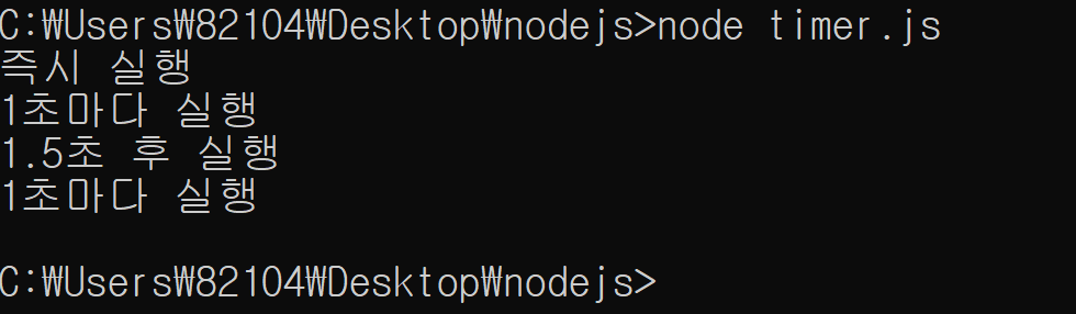 - 추가적으로 Timer 모듈은 Node의 전역 객체이므로 require 키워드를 요구하지 않습니다.