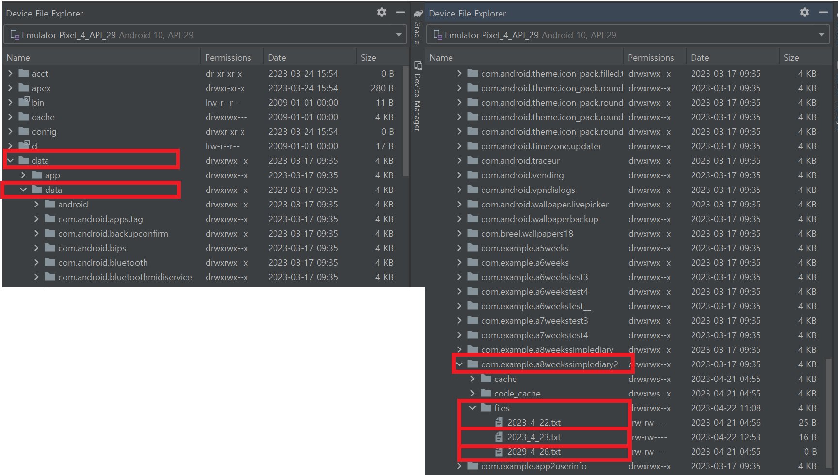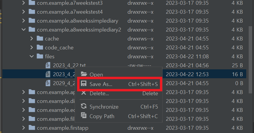 3-1. 일기장 Application에 대한 저장된 텍스트 파일 확인해 보기