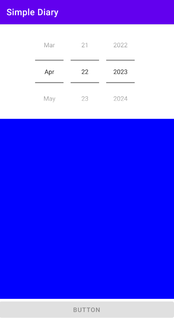 - DatePicker, EditText, Button 위젯을 각 1개씩 생성합니다.