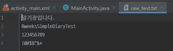 android:text="/res/raw에서 파일 읽기"/>