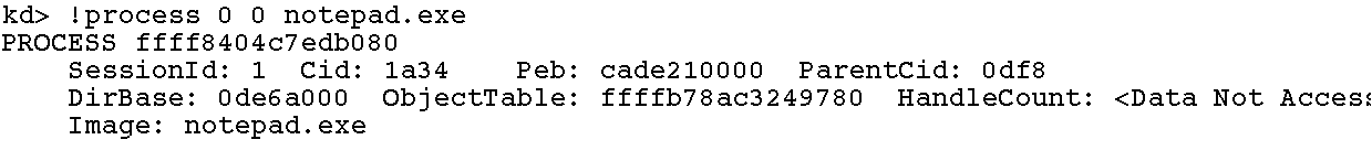(2) kd> !process 0 0 notepad.exe