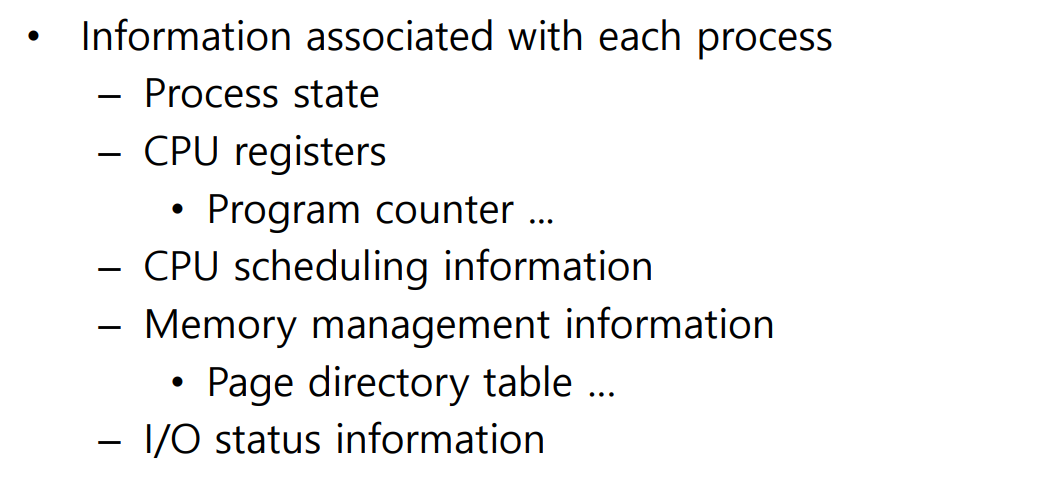→ 운영체제가 각 프로세스에 대하여 관리하는 정보를 PCB(Process Control Block)이라고 합니다.