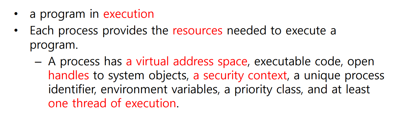 (1) 물리 저장소에 저장된 프로그램이 Loader에 의해 메모리에 로드되어 실행되는 상태에 있을 때 Process라고 할 수 있습니다.