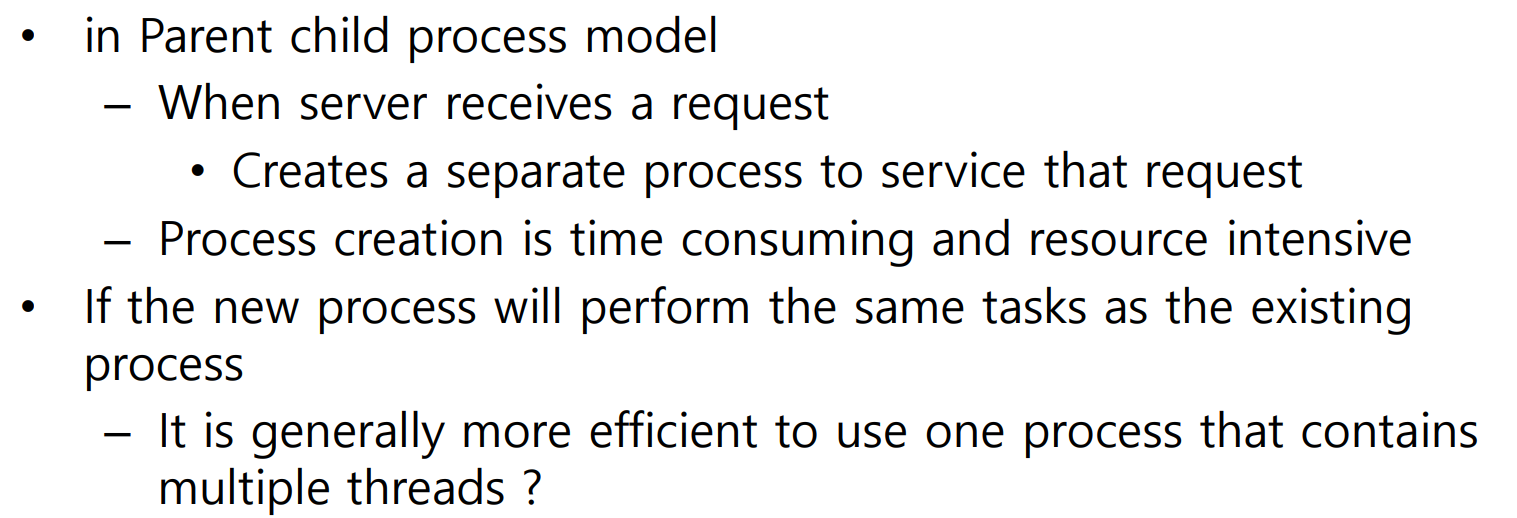 → 일반적으로 여러 스레드를 포함하는 하나의 프로세스를 사용하는 것이 더 효과적일까?