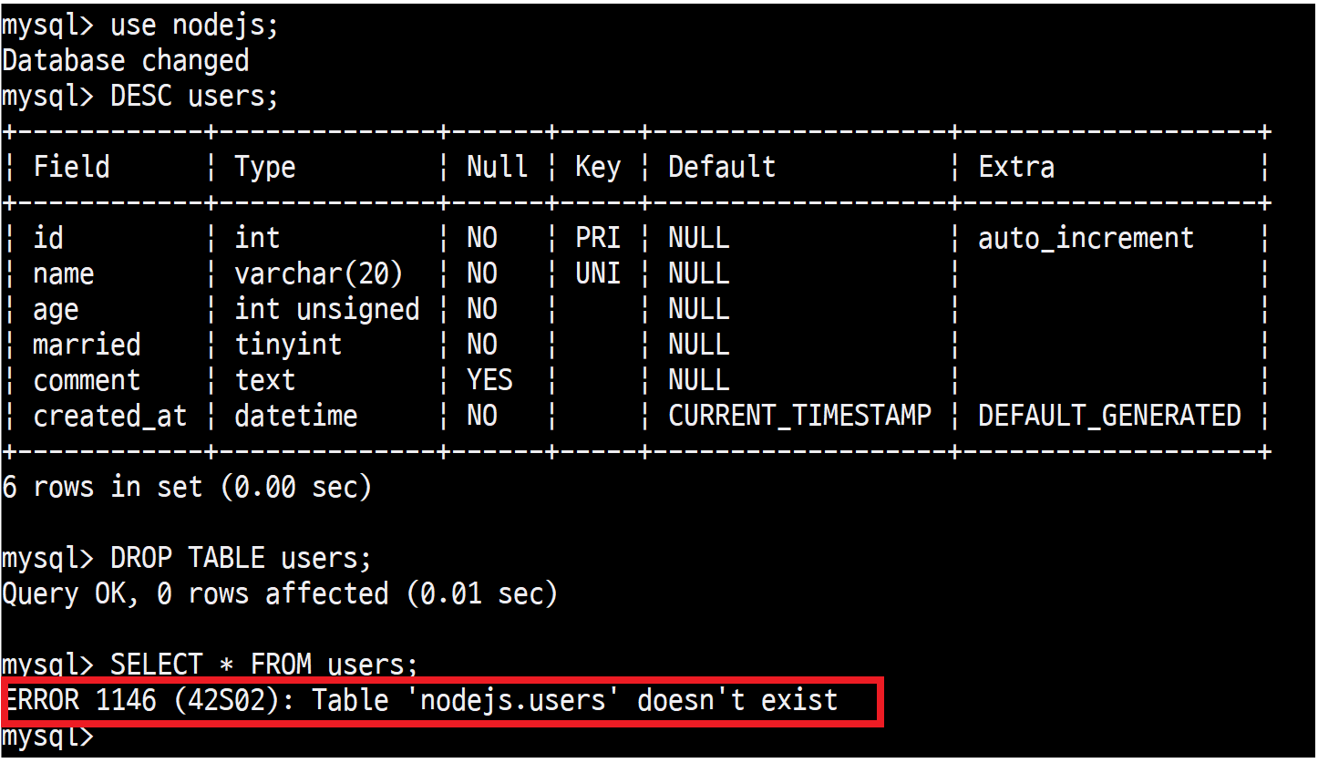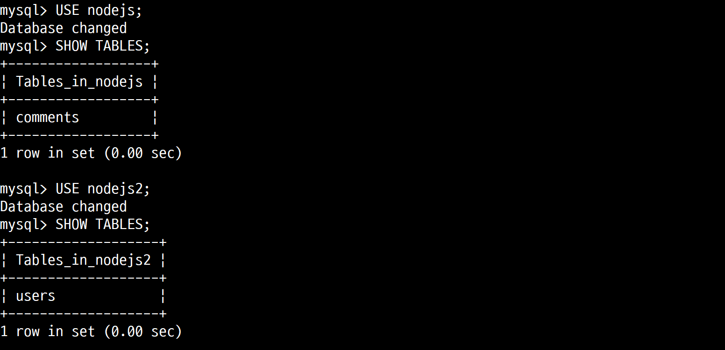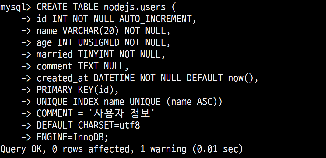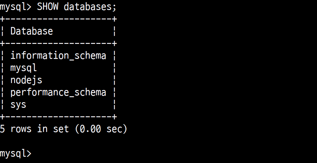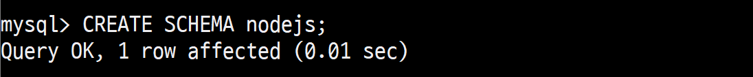 3-1. Console 환경에서 MySQL에 접속하고 새로운 nodejs 데이터베이스를 생성