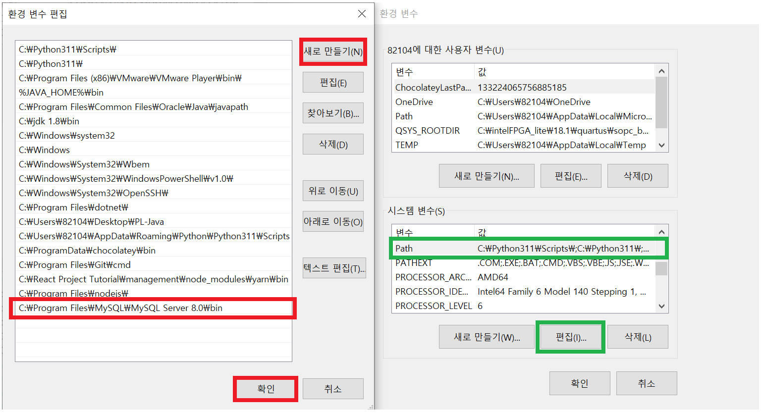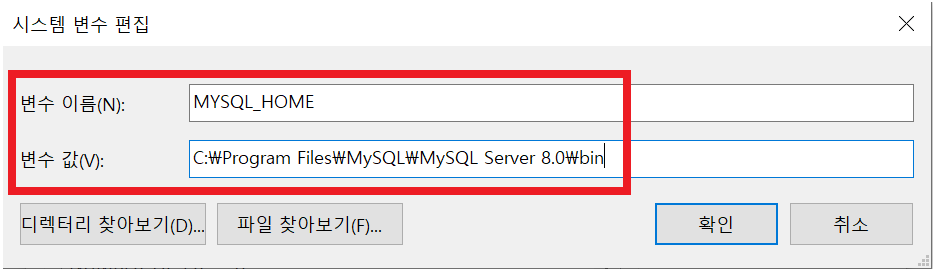 (3) path 변수에서 C:\Program Files\MySQL\MySQL Server 8.0\bin을 새롭게 추가합니다.