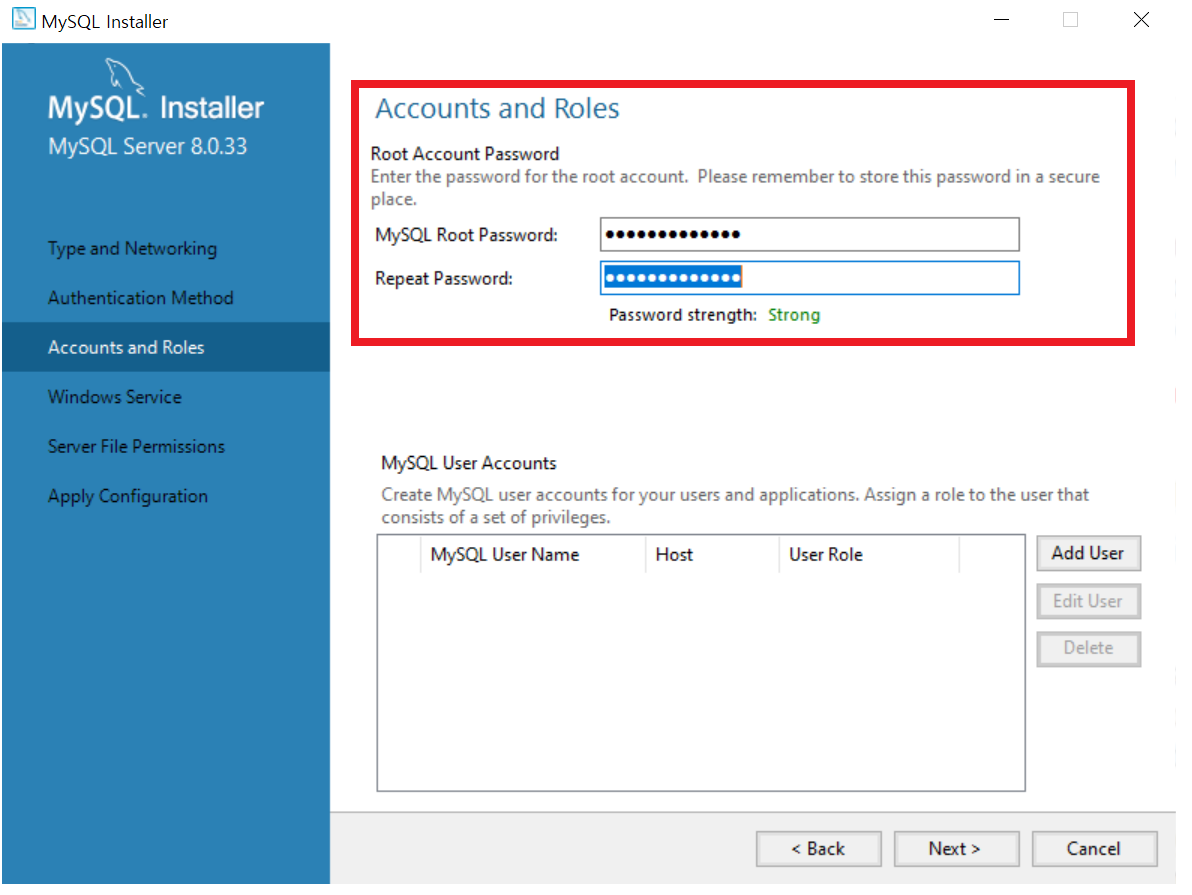 (6) 루트 계정의 비밀번호를 설정합니다.