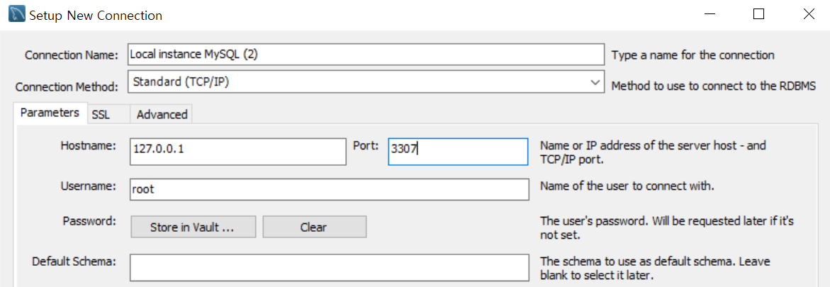 (1) MySQL Workbench를 실행하고 MySQL Connections 우측의 "+" 버튼을 클릭합니다.