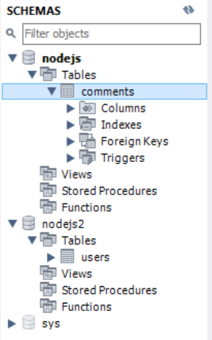 - SCHEMAS 영역에서 마우스 우측 클릭 후 Refresh All 클릭