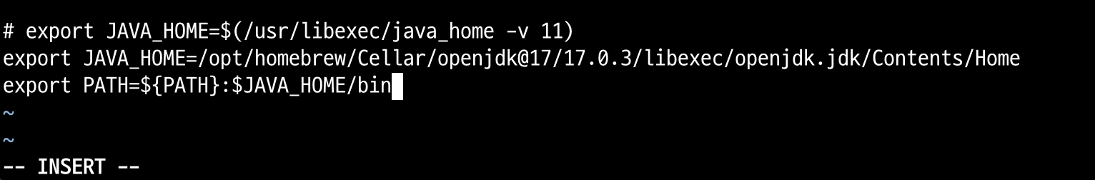 export JAVA_HOME=/opt/homebrew/Cellar/openjdk@17/17.0.3/libexec/openjdk.jdk/Contents/Home