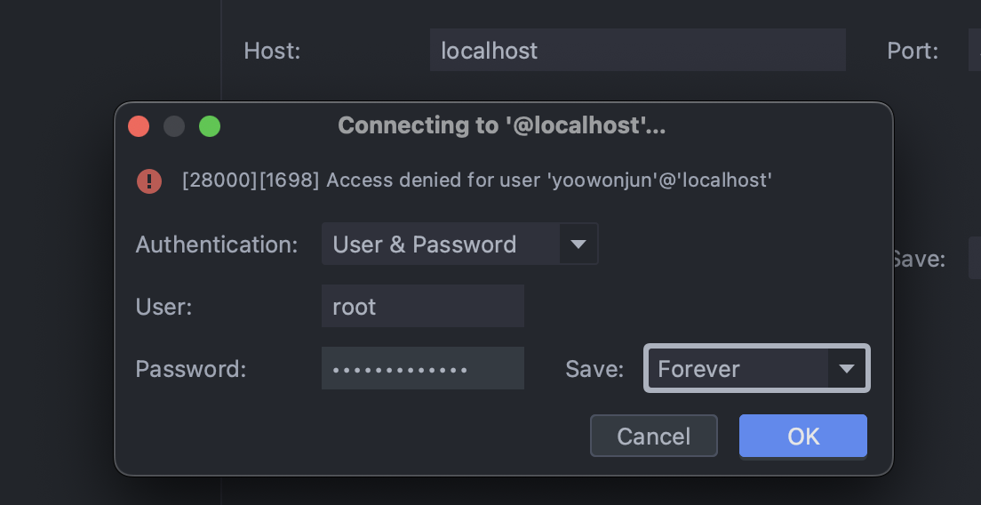 (1) HomeBrew를 통해 MariaDB를 설치하고 IntelliJ에서 Spring Boot 프로젝트와 데이터베이스를 연동하는 과정에서 아래와 같은 오류가 발생하였습니다.