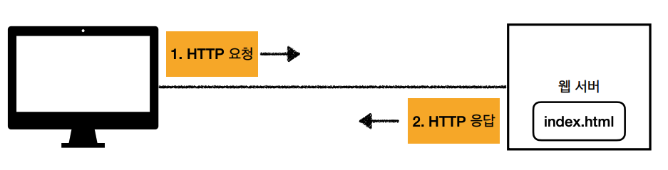 (1) 웹 브라우저에서 특정 URL로 접속하면 인터넷을 통해 해당 서버에 요청을 보내어 관련된 서버가 요청에 맞는 응답을 다시 웹 브라우저로 전송한다.