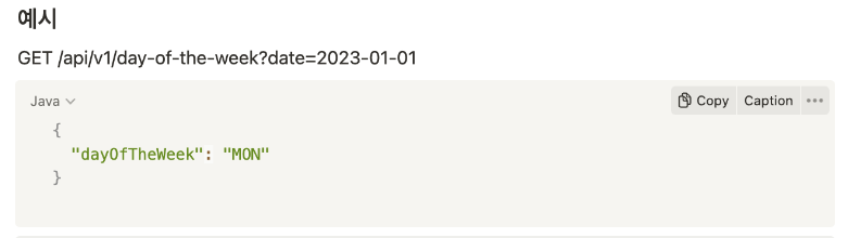 (1) 날짜를 입력하면 무슨 요일인지 알려주는 GET 조회 API를 설계한다.