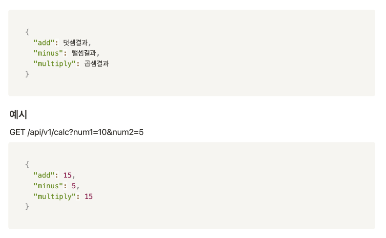 (1) 두 수를 입력하면 다음과 같은 결과가 반환되는 GET API를 설계한다.