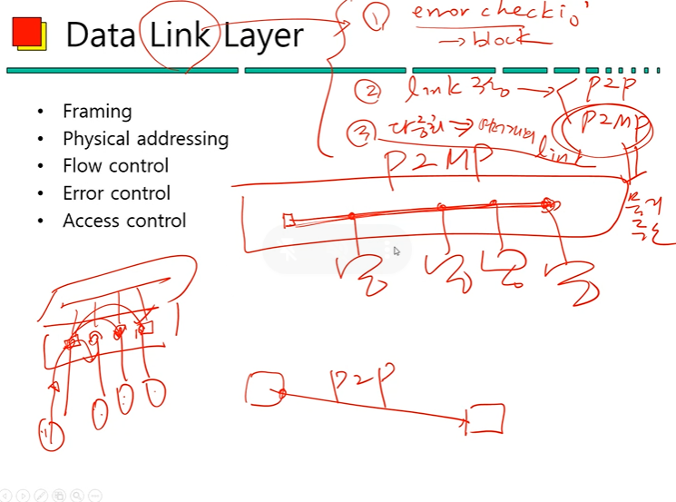 (3) 물리 계층에서는 데이터 처리 단위가 비트이지만 데이터 링크 계층의 경우 블록 단위로 주고받으며 블록 내부를 모두 오류 체크를 수행하기 때문에 1계층에서 수행하지 못했던 오류 체크를 진행할 수 있게 된다.