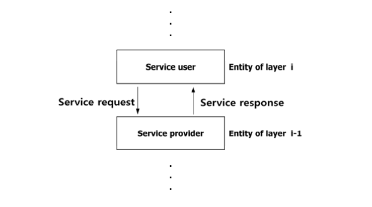 - 하위 계층은 상위 계층에 서비스를 제공하는 역할을 수행한다. (Provide service)