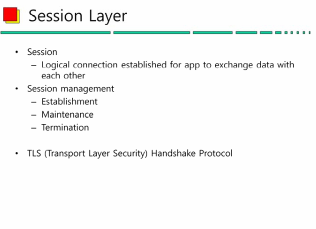(1) 세션은 가상적인 연결 통로라고 볼 수 있다. 데이터를 주고받는 프로세스들이 서로 논리적으로 연결되어 있어야 하는데 세션 계층이 이를 담당하고 있다.