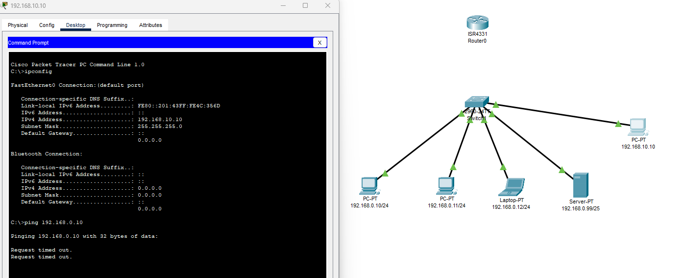 4-2. ping 진행 시 Request Time out (IPv4의 네트워크 주소가 다르기 때문)