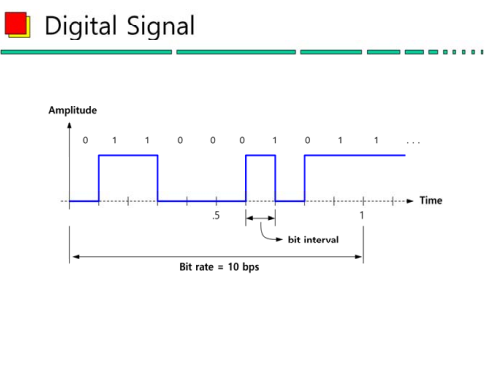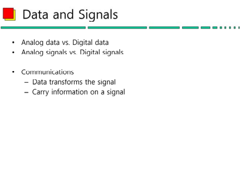(1) 데이터에는 아날로그, 디지털 데이터가 존재하며 신호에도 아날로그, 디지털 신호가 존재한다.