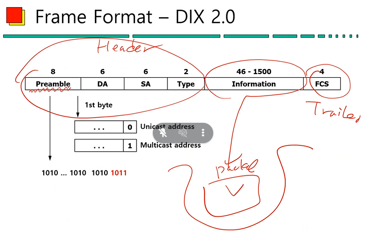 (3) Preamble은 프레임의 시작 부분을 알려주는 정보이다.