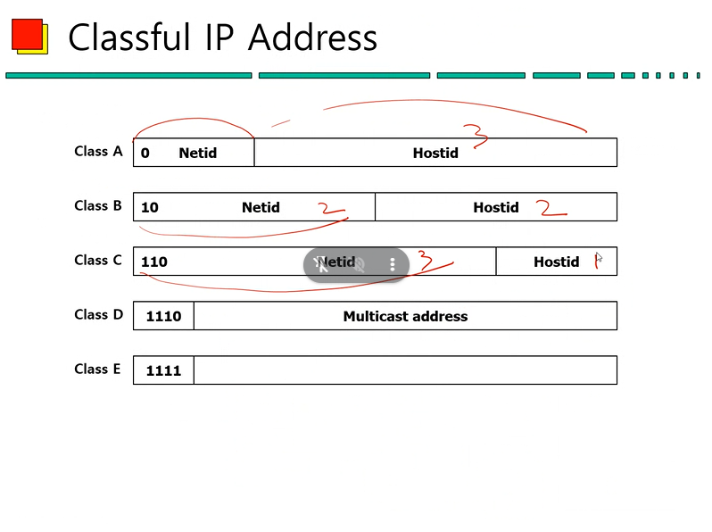 (2) Network ID의 영역에 따라 IP 주소의 클래스를 구분할 수 있다.