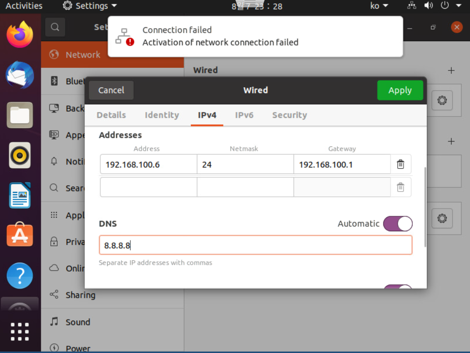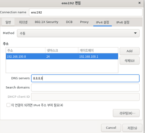 (2) 호스트 이름 및 주소대역 & 연결 설정 : nmtui