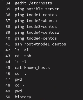 (1) 앤서블이 호스트명으로 관리 노드에 접근할 수 있도록 IP 주소와 호스트명을 etc/hosts에 위와 같이 등록한다.