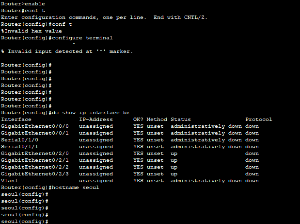 (3) Global Configuration Mode - 라우터 운영 전체에 영향을 주는 요소들을 수정할 수 있다.