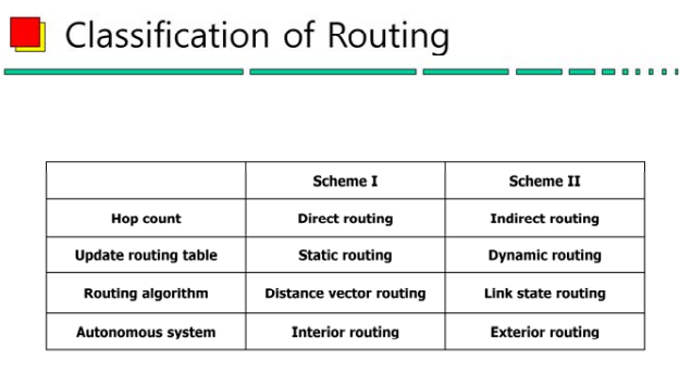 (3) 라우팅 테이블의 수정 여부에 따라 Static / Dynamic Routing으로 분류된다.