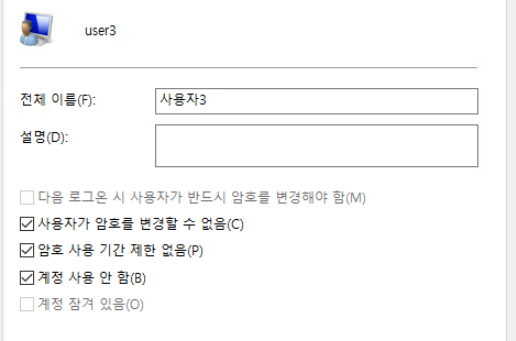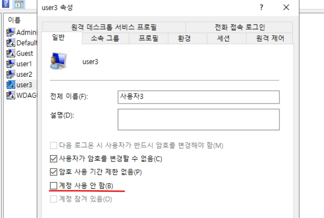 - 해당 계정은 Windows Server 2022 환경에서 사용하지 않도록 Default 값으로 설정되어 있다.