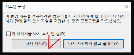 (3) 시스템 구성 Alert가 뜨면 다시 시작으로 체크한다.