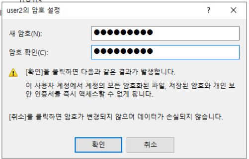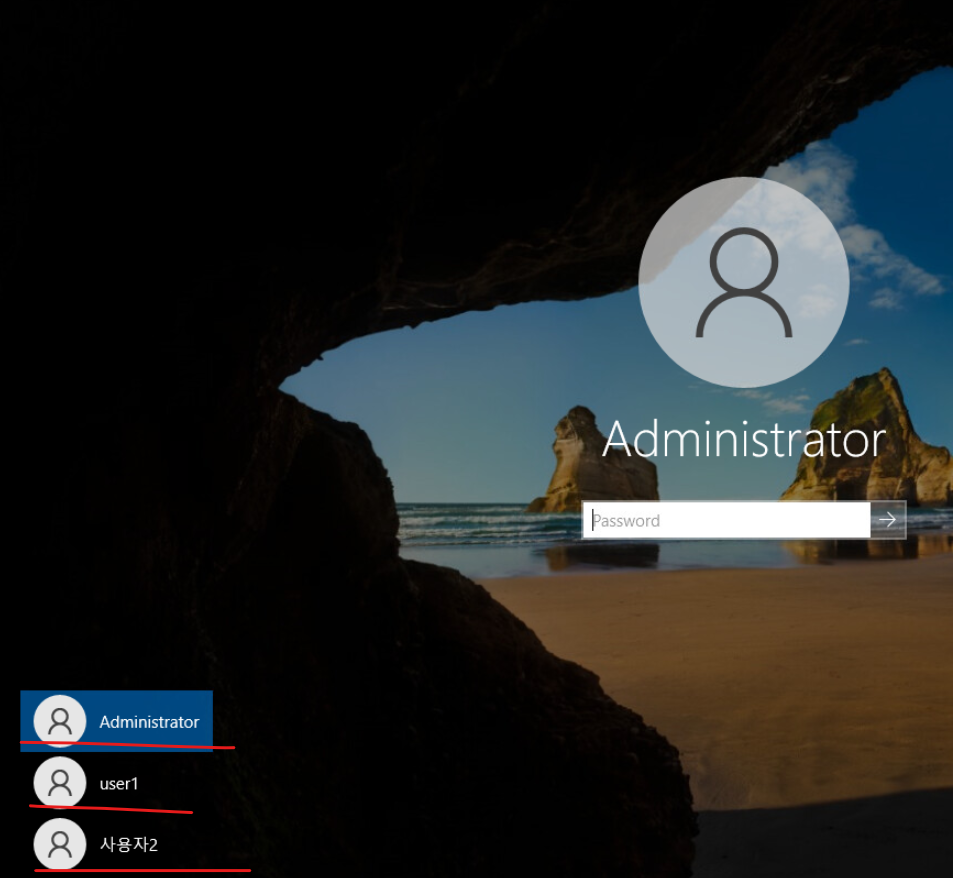 - 사용자 계정에 대한 비밀번호를 입력하여 로그온한다.