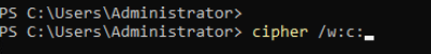 (4) cipher /w:c: 옵션 : Windows에서 사용되는 커맨드로, 디스크나 파일의 데이터를 완전히 삭제하여 복구할 수 없도록 작업하게 된다. cipher는 윈도우에서 제공하는 Encryption & Decryption 도구 커맨드다.