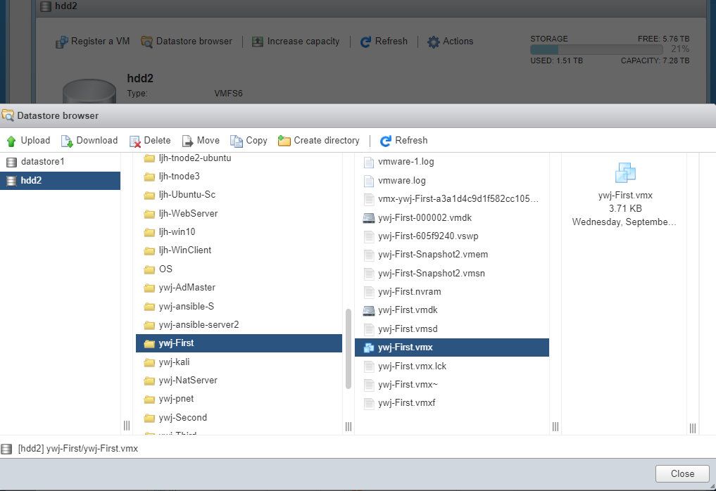 (9) ywj-first의 .vmdk 파일을 ywj-client로 Copy&Taste 한다.