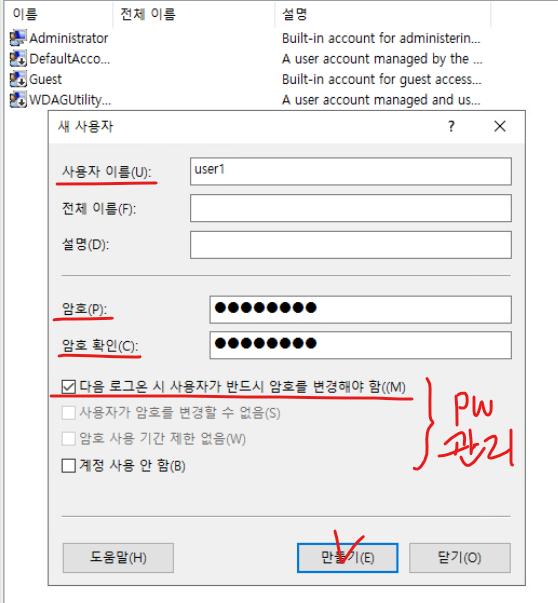 (3) 패스워드의 경우 USER1의 패스워드를 지정했다. (P@ssw0rd)
