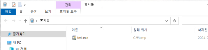 (1) 압축한 파일을 삭제하면 일반적으로 휴지통으로 이동되고 휴지통에서 영구 삭제할 수 있다.