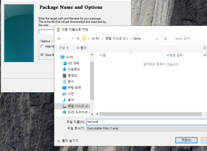 (7) 압축 파일에 대한 패키지 네임과 저장할 폴더 경로를 지정해 준다.