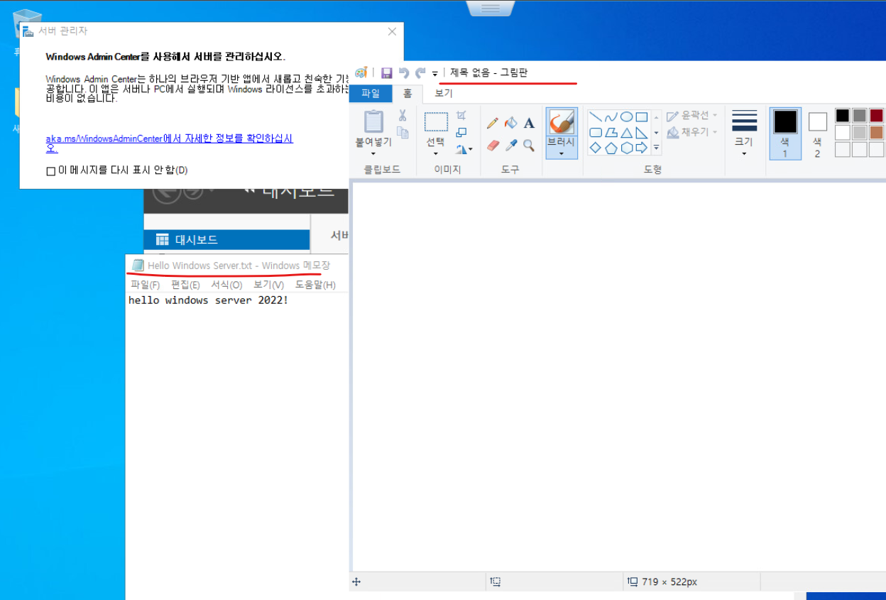 (9) 메모장, 그림판이 부팅 후 바로 실행되는 것을 확인할 수 있다.