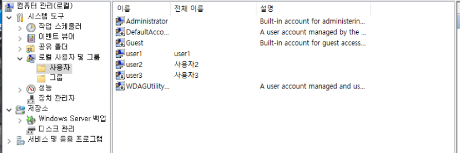 (2) 독립 실행형 서버에서 생성한 사용자의 계정을 Local User Account라고 한다. 해당 계정은 Active Directory에 접근할 수 없고 서버의 물리적 리소스에만 접근 가능하다.(Windows Server 2022 / Windows 10, 11에도 동일하게 적용됨)