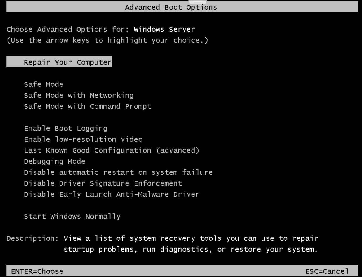 - 부팅 매니저라고도 불리며 bootmgr.exe에는 부팅과 관련된 설정 정보가 들어있다. 만약 Server 2022 운영체제 외에 다른 운영체제가 존재한다면 멀티 부팅 선택 화면으로 진입한다.