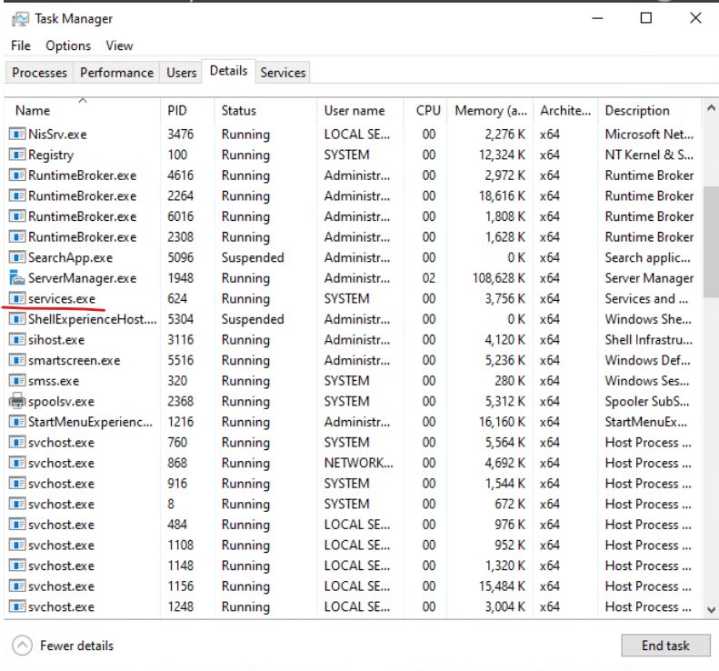 - 로그온 이후 윈도우를 운영하기 위한 세션을 관리하는 smss.exe, 시작 프로그램을 관리하는 Services.exe가 자동으로 실행되고 백그라운드 환경에서 실행된다.