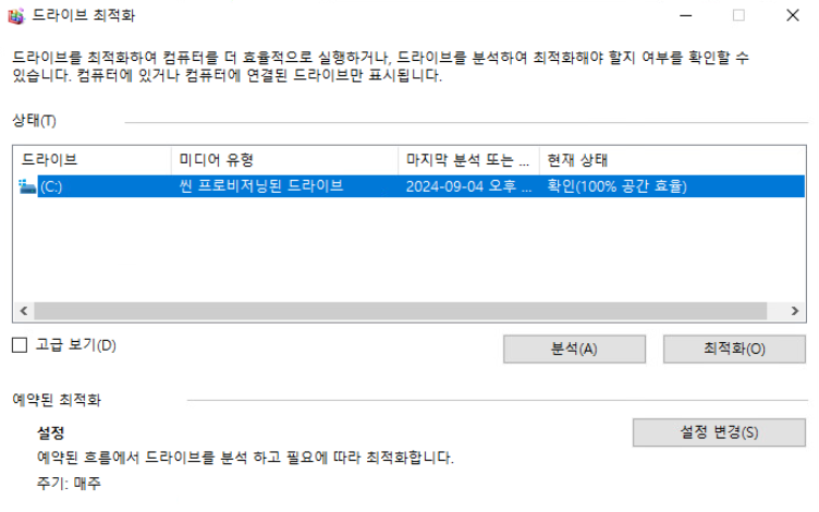 (1) 로컬 디스크의 Properties에서 최적화를 수행할 수 있다.